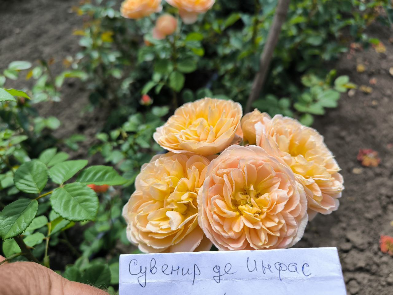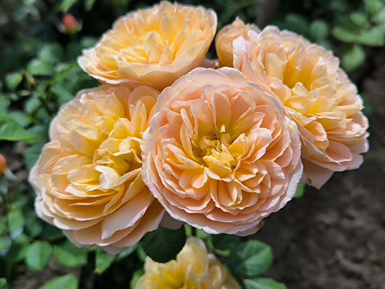 Цветы мандариново-оранжевого цвета с золотисто-красным оттенком, чашевидные, густомахровые, имеют 55-75 лепестков в одном цветке. Бутон оранжево-красный, округлый. Диаметр цветка составляет 7-9 см. Роза обладает очень насыщенным ароматом. Цветение обильное, повторное, цветки собраны в соцветия, на одном цветоносе в период массового цветения насчитывается 3 - 5 цветков одновременно.