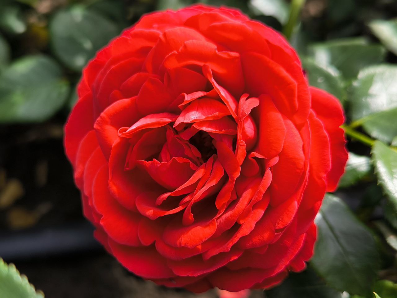 Цветки диаметром 5-7 см, махровые, старинной шаровидной формы, красные, всегда в соцветиях. Цветение повторное. Листва тёмно-зелёная, глянцевая, устойчивая к чёрной пятнистости и к мучнистой росе. Куст компактный, аккуратный, высотой 70 см и шириной 50 см. Цветки устойчивые к атмосферным воздействиям, не выгорают.